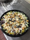 Our fresh dough topped with homemade 3 rivers sauce, bacon, grilled chicken, steak, french fries, fresh garlic and romano.